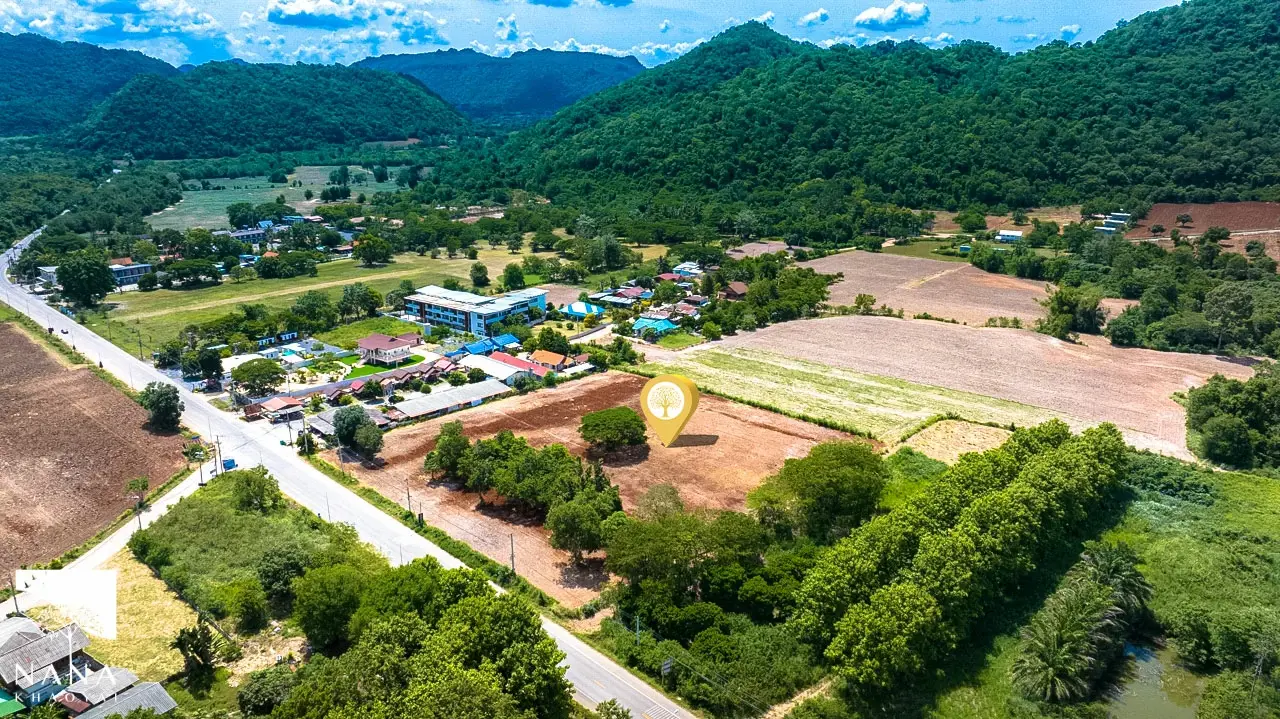 • เห็นแนวเขาและพื้นที่สีเขียวรอบด้าน รายล้อมด้วยรีสอร์ต–บ้านพักอาศัยจริง เดินทางสะดวก